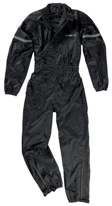 Simple de una sola pieza traje de lluvia con recubrimiento de PVC resistente al agua. El traje está parcialmente forrado y tiene una entrada diagonal. Las piernas tienen una amplia apertura para que pueda tirar fácilmente en y sobre sus botas. Ribete reflector asegura que también puede ser visto en la oscuridad.